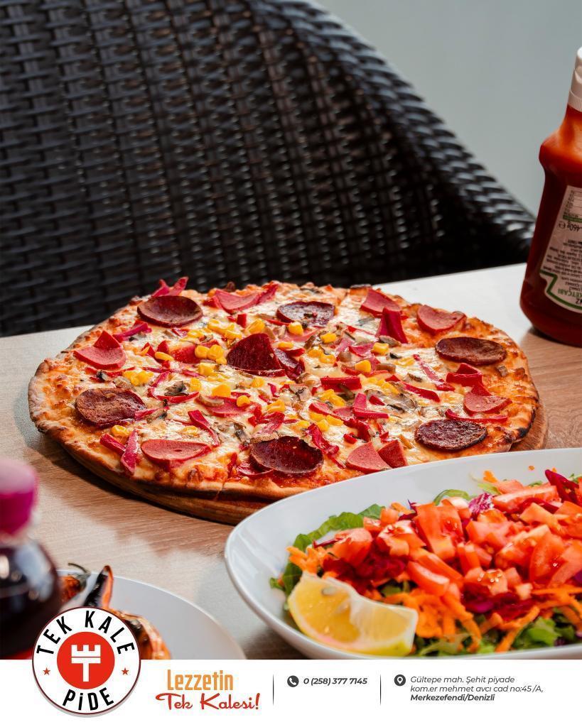 Tek Kale Pide menüsünde Merkezefendi pizza çeşitleri, Merkezefendi vejetaryen pizza ve farklı fırın lezzetleri yer alır. Karışık pizza, bu menü içinde en zengin içerikli ve doyurucu seçeneklerden biri olarak öne çıkar.